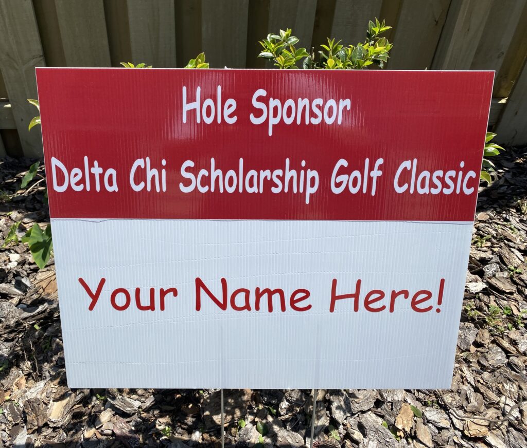 Each year, we are looking for those that are willing to help support our cause in raising funds for the Delta Chi Scholarship Golf Classic. One of the best ways, whether they golf or not, to support our cause is with a hole sponsorship. Signage will be displayed recognizing each of our donors. We hope you will support our efforts by becoming a hole sponsor today! Hole sponsorships are $150. Checks should be made out to the Delta Chi Fraternity.
